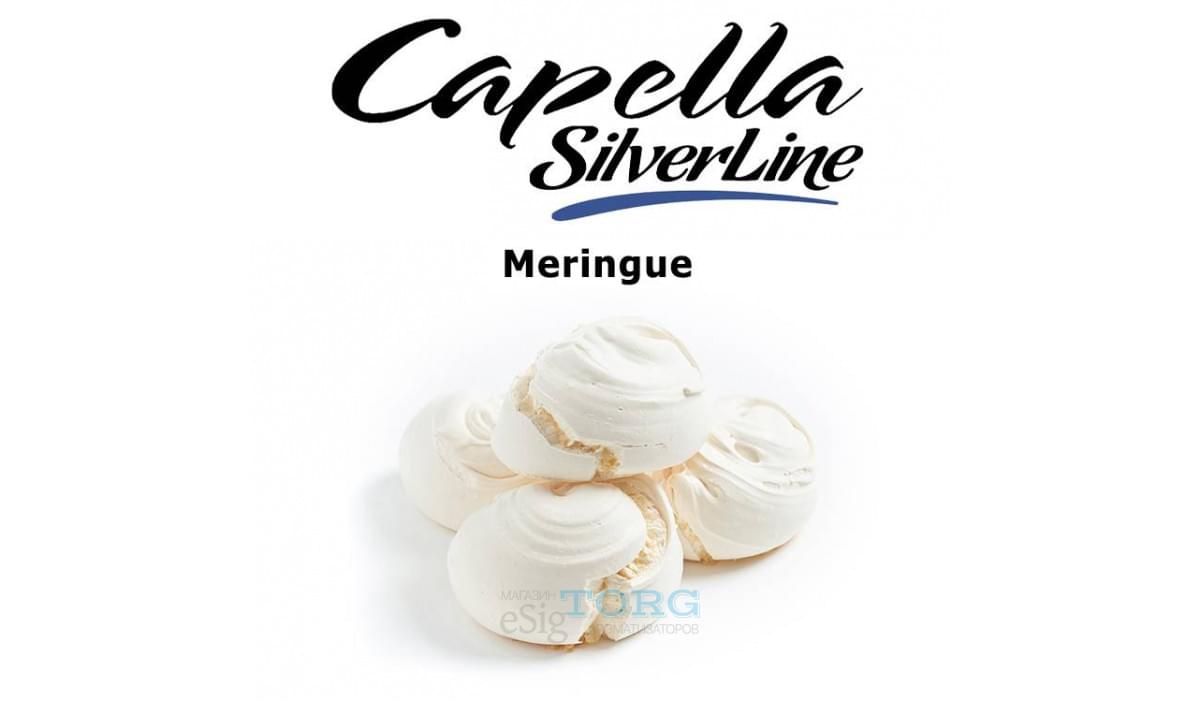 Capella Meringue — арома со вкусом крема безе. Создателям удалось удачно повторить вкус легкой хрустящей сахарной корочки, из-под которой открывается тягучая белковая консистенция. Запаривайте с фруктами и печеньем. Рекомендованная концентрация (для рецептов с Meringue Cap) — от 0,3 до 1,7%.