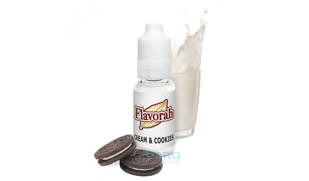 Cream and Cookies от Flavorah — вкус популярного печенья с начинкой. Во вкусе: сладкое тесто, сливки, нежная ваниль. Премиальная арома хорошо сбалансирована, она может выступать базой для множества кондитерских рецептов. Рекомендуемая концентрация для смешиваяания Cream and Cookies FLV — от 0,3 до 1,8% (в рецептах).