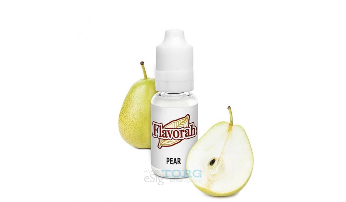 Арома Pear — вкус груши. Ароматизатор довольно точно передает терпкую и зернистую структуру грушевого вкуса, обладает умеренной сладостью. Груша Pear Flavorah хорошо сочетается с другими фруктами, от традиционных (яблоки) до экзотических, а также с некоторыми ягодами и даже овощами (например, огурец). Оптимальная дозировка — от 0,1 до 1% (для рецептов).